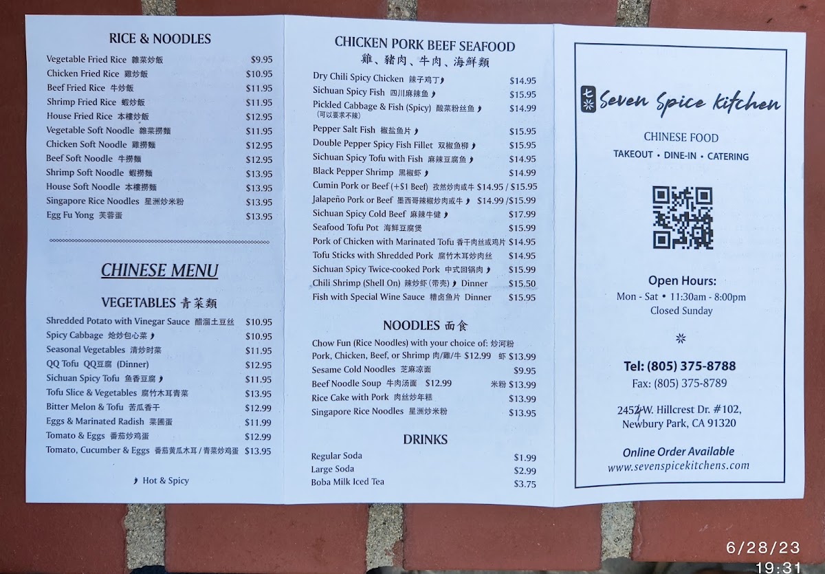 With a wide range of options, from hearty noodle soups to flavorful meats and seafood, Seven Spice Kitchen promises a satisfying dining experience that caters to all tastes and preferences. Whether you're here for a quick bite or a more indulgent meal, there’s something for everyone on their extensive menu.